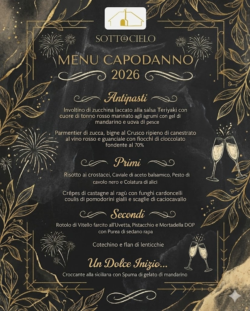 Scopri il menù completo e riserva il tuo posto per il Gran Cenone di San Silvestro.